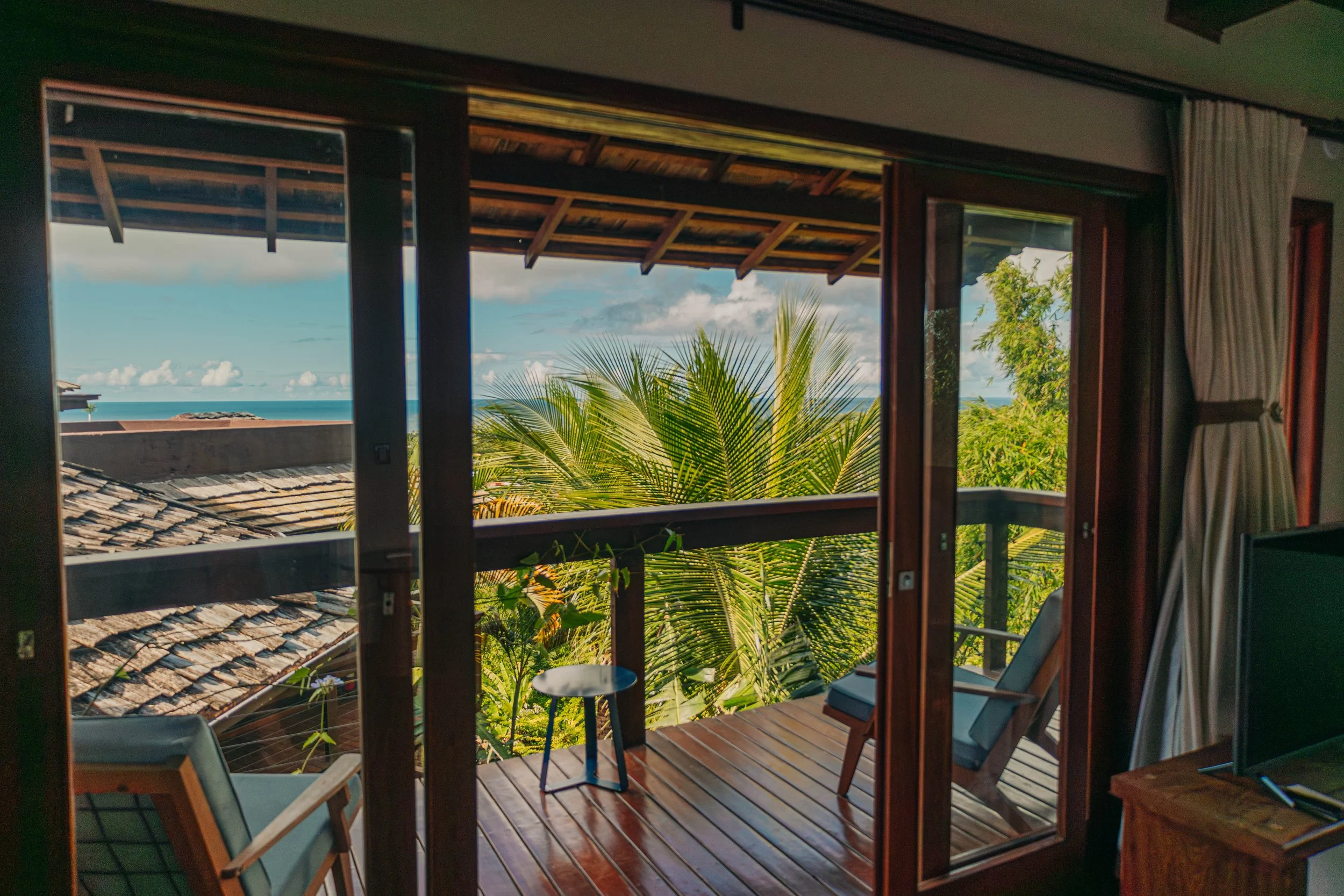 A experiência se inicia na varanda privativa, presente em todos os apartamentos, com vistas deslumbrantes em todas as acomodações, seja para o rio, para o mar ou para a Mata Atlântica.